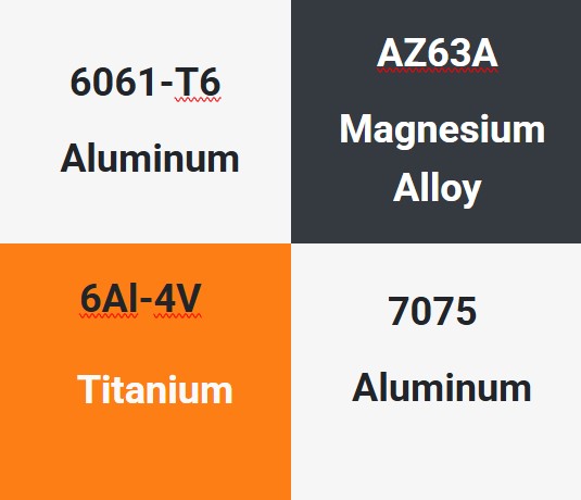 | Aluminum Series | A2024, A5052, A6061, A6063, A6463, A6082, A7075. | |